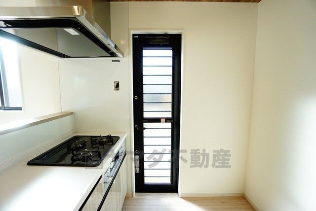 勝手口付きキッチン。においがこもりやすいキッチンの換気にも役立ちます。ごみの仮置きにもなり、便利です^^