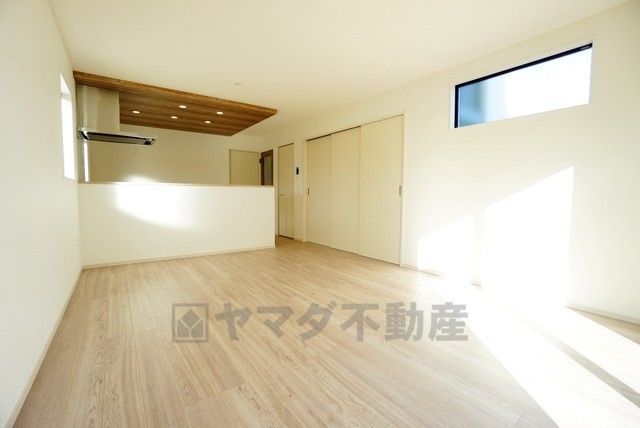 大きな窓のあるリビングは、陽光あふれる明るい空間です。居心地良く、ご家族皆がゆったり寛げる憩いの空間となりそうです。