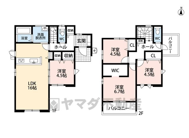 温水洗浄機付トイレです。節水機能もあるので、安心して使えますね。もちろん、1階2階の2ヶ所にトイレがあるので、忙しい朝にもゆとりができますね。
