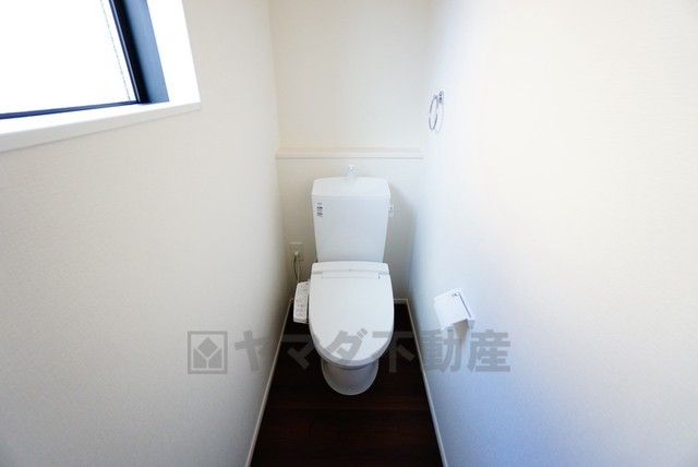 温水洗浄機付トイレです。節水機能もあるので、安心して使えますね。もちろん、1階2階の2ヶ所にトイレがあるので、忙しい朝にもゆとりができますね。