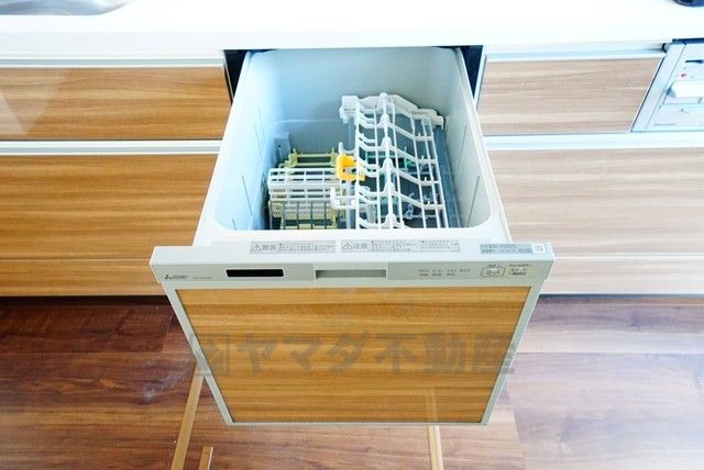 食事の後の手間を解消する食器洗い乾燥機付。冬場の洗い物で手荒れの悩みもなくなります。手洗いよりも節約できて便利。