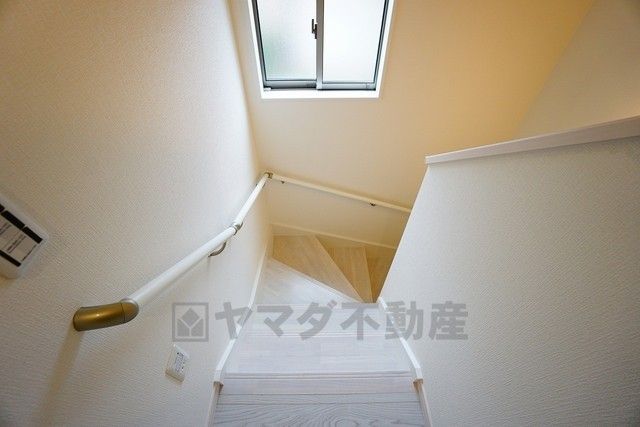 同仕様写真。小さなお子様やご高齢の方でも安心できる、手すり付き階段。段差も低めで設定されており、安全性にも優れています。