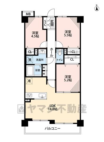 LDK14.8畳、洋4.5畳、洋5.2畳、洋5.5畳 |