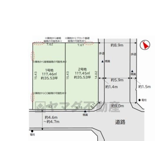 公道 南西 幅員4.6m 公道 南東 幅員8.9m |