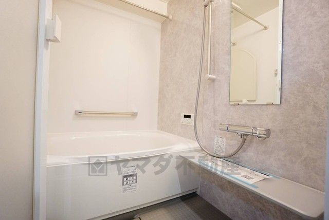 浴室暖房乾燥機付き。天候に左右されず、いつでも好きなときに洗濯物を干せるので、仕事や家事で忙しい方に重宝します。