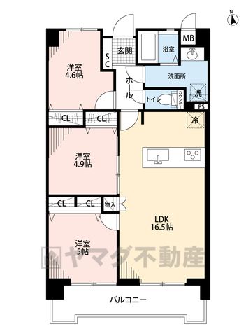 LDK16.5畳、洋4.6畳、洋4.9畳、洋5畳 |