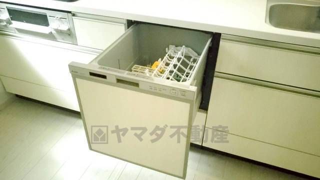 食事の後の手間を解消する食器洗い乾燥機付。冬場の洗い物で手荒れの悩みもなくなります。手洗いよりも節約できて便利。