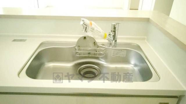 広々としたステンレスシンクには、洗剤やスポンジを収納出来るラック付き。広さも確保しているので、大きなお鍋も洗いやすいです。