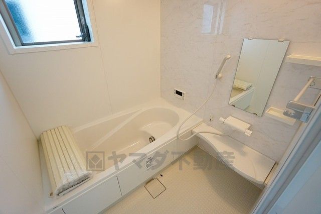 同仕様写真。1日の疲れを癒すくつろぎのバスルーム。足を伸ばしてもゆったりと入れるサイズです。お子様と一緒にお風呂に入っても狭くないですね^^