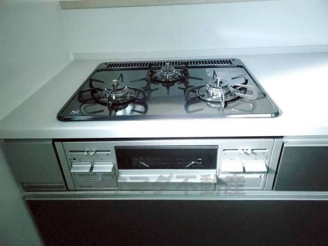 複数の調理を一度に行うことができる3口コンロ。効率よくお料理が出来ます。毎日のお料理も楽しくなりますね^^