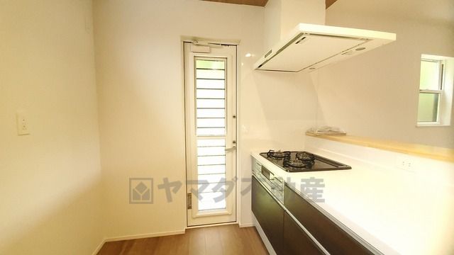 勝手口付きキッチン。においがこもりやすいキッチンの換気にも役立ちます。ごみの仮置きにもなり、便利です^^