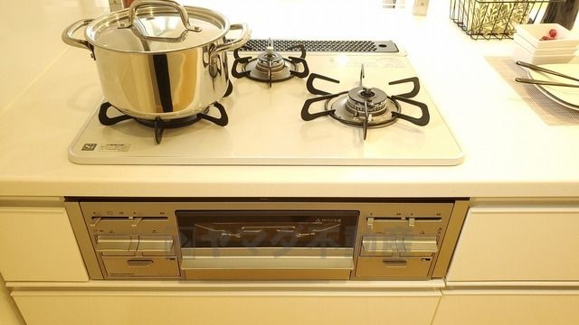複数の調理を一度に行うことができる3口コンロ。効率よくお料理が出来ます。毎日のお料理も楽しくなりますね^^
