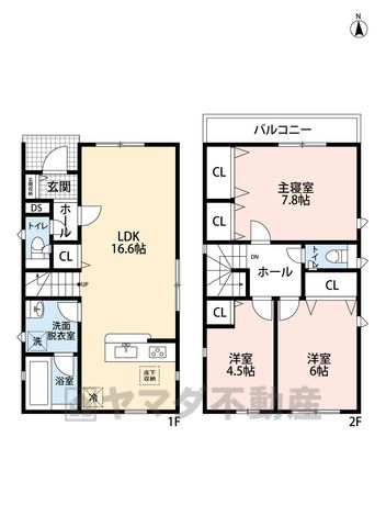 DK16.6畳(1F)、洋4.5畳(2F)、洋6畳(2F)、洋7.8畳(2F) |