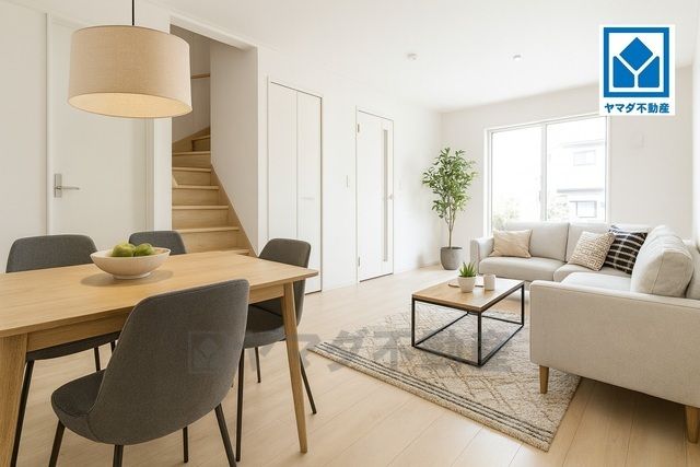 家具はイメージです。大きな窓のあるリビングは、陽光あふれる明るい空間です。居心地良く、ご家族皆がゆったり寛げる憩いの空間となりそうです。