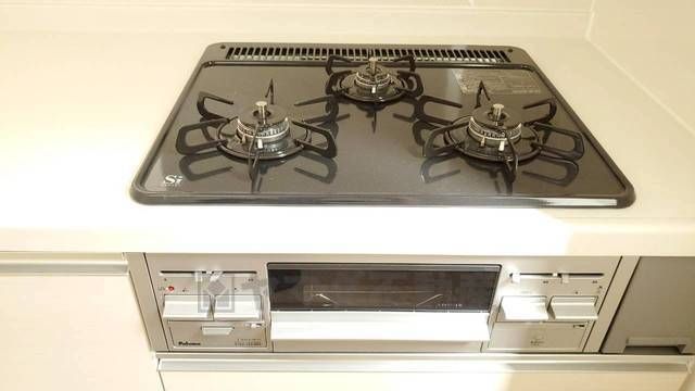 複数の調理を一度に行うことができる3口コンロ。効率よくお料理が出来ます。毎日のお料理も楽しくなりますね^^