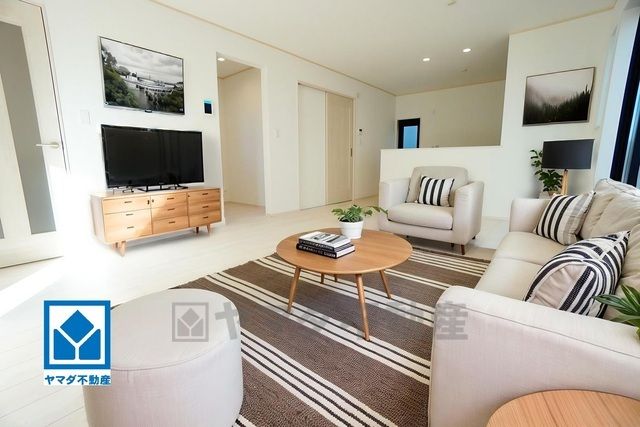 家具はイメージです。大きな窓のあるリビングは、陽光あふれる明るい空間です。居心地良く、ご家族皆がゆったり寛げる憩いの空間となりそうです。
