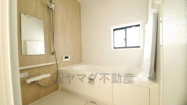1日の疲れを癒すくつろぎのバスルーム。足を伸ばしてもゆったりと入れるサイズです。お子様と一緒にお風呂に入っても狭くないですね^^