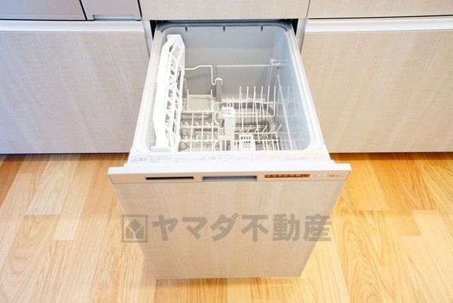 食事の後の手間を解消する食器洗い乾燥機付。冬場の洗い物で手荒れの悩みもなくなります。手洗いよりも節約できて便利。