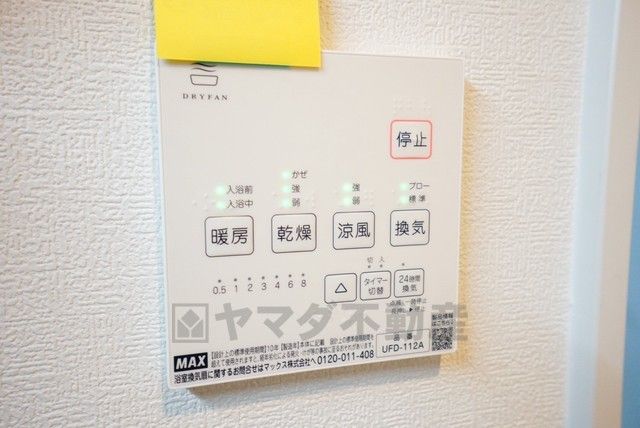 雨の日の洗濯も安心できる浴室暖房乾燥機付き浴室。リモコンで操作もボタン1つで簡単。