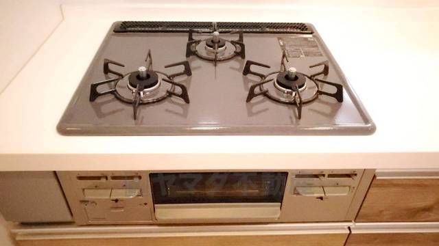 複数の調理を一度に行うことができる3口コンロ。効率よくお料理が出来ます。毎日のお料理も楽しくなりますね^^