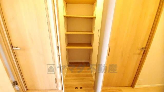 掃除機や扇風機などよく使う家電や日用品、備品などの収納に便利です。