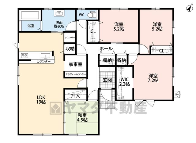 LDK19畳(1F)、和4.5畳(1F)、洋5.2畳(1F)、洋7.2畳(1F) |
