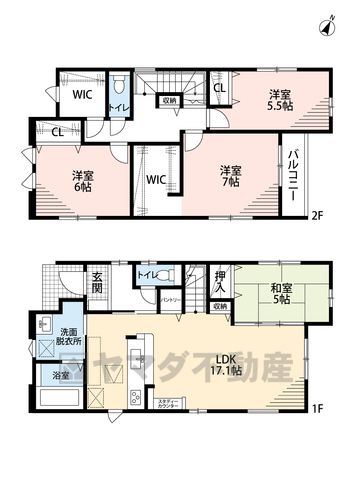 LDK17.1畳(1F)、和5畳(1F)、洋5.5畳(2F)、洋6畳(2F)、洋7畳(2F) |