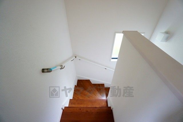 同仕様写真。小さなお子様やご高齢の方でも安心できる、手すり付き階段。段差も低めで設定されており、安全性にも優れています。
