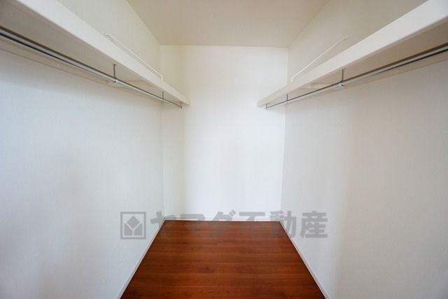 同仕様写真。季節物の衣類もスッキリ収納できるウォークインクローゼット。クローゼット内で洋服のコーディネートから着替えまで中で出来るので、部屋が散らかりにくいです。