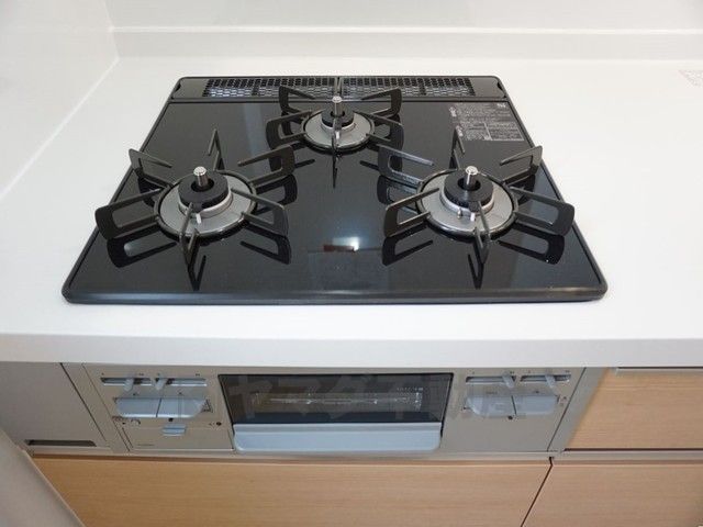 同仕様写真。複数の調理を一度に行うことができる3口コンロ。効率よくお料理が出来ます。毎日のお料理も楽しくなりますね^^