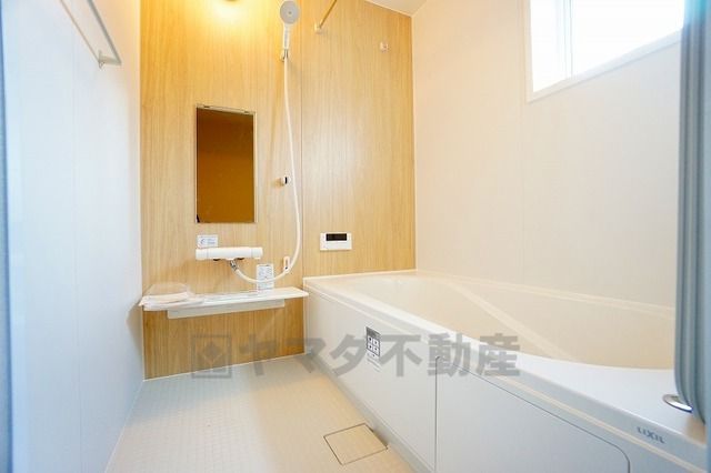 1日の疲れを癒すくつろぎのバスルーム。足を伸ばしてもゆったりと入れるサイズです。お子様と一緒にお風呂に入っても狭くないですね^^