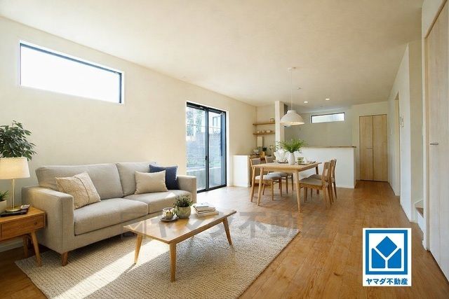 家具はイメージです。大きな窓のあるリビングは、陽光あふれる明るい空間です。居心地良く、ご家族皆がゆったり寛げる憩いの空間となりそうです。
