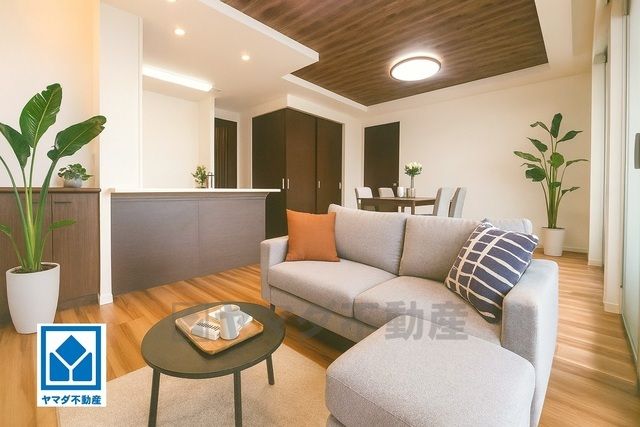 リビングは広々とした設計で、家族が集い、寛ぐ暮らしの空間を演出しています。思い思いの時間を過ごしたり、家族みんなで食事をしたり、素敵な団らんの場になりますね。