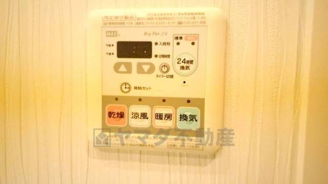 雨の日の洗濯も安心できる浴室暖房乾燥機付き浴室。リモコンで操作もボタン1つで簡単。