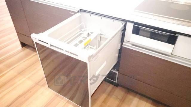 食事の後の手間を解消する食器洗い乾燥機付。冬場の洗い物で手荒れの悩みもなくなります。手洗いよりも節約できて便利。