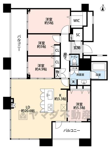 LDK20.6畳、洋5.5畳、洋4.9畳、洋5畳、洋8畳 |