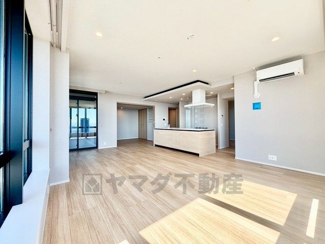 大きな窓を配置したリビング。ソファーを置いて、ゆったりした気持ちで上層階の景色を楽しみたいですね^^