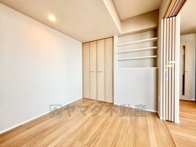 リビング横の洋室。可動棚付きのニッチやクローゼットがございます^^普段はリビングとつなげて、広々としたスペースを確保できそうです^^