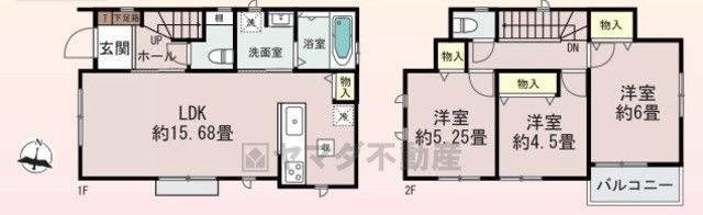 LDK15.6畳(1F)、洋4.5畳(2F)、洋5.2畳(2F)、洋6畳(2F) |