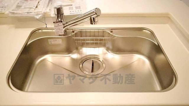 色も形もキレイなシンクは、広さも確保しているので、大きめの鍋も簡単に洗えます。