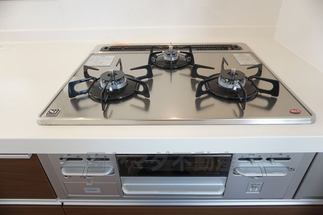 同仕様写真。複数の調理を一度に行うことができる3口コンロ。効率よくお料理が出来ます。毎日のお料理も楽しくなりますね^^
