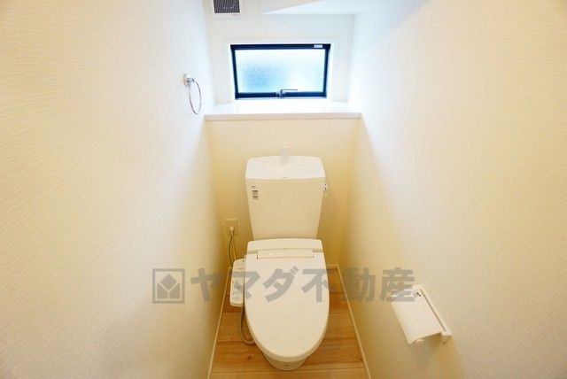 温水洗浄機付トイレです。節水機能もあるので、安心して使えますね。もちろん、1階2階の2ヶ所にトイレがあるので、忙しい朝にもゆとりができますね。