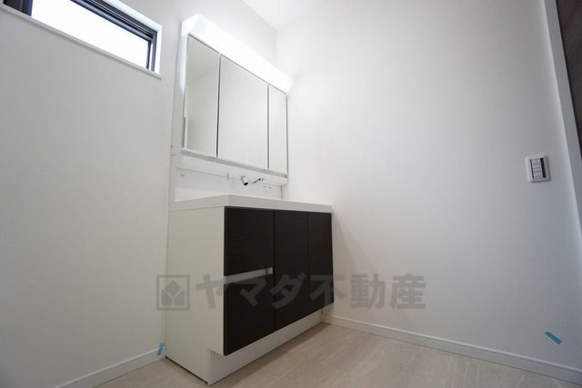 同仕様写真。三面鏡裏収納付き洗面化粧台です^^ 鏡の裏に歯磨きセットやスキンケア用品などの収納できて便利ですね^^