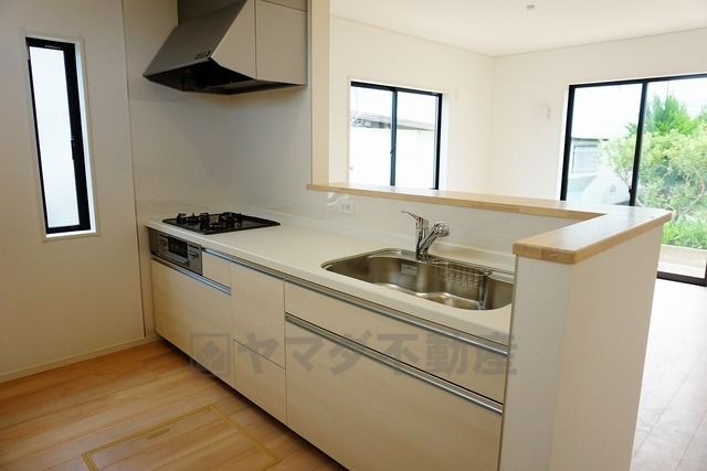 同仕様写真。対面式カウンターキッチンからはお子様の様子が見守れます。ダイニングへの配膳や調理の時便利なカウンター付き。