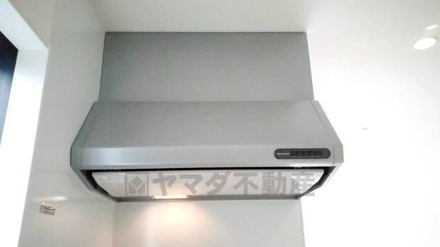 風量が弱・強と切替え可能なレンジフードが調理中の煙をしっかり吸い込みます。手元を照らすライト付きです。
