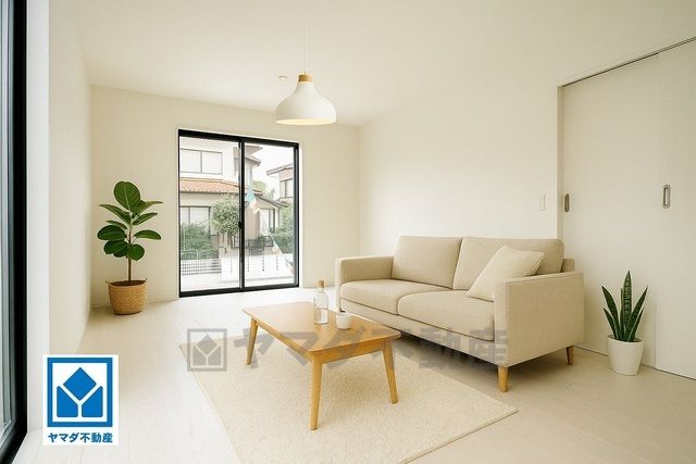 家具はイメージです。大きな窓のあるリビングは、陽光あふれる明るい空間です。居心地良く、ご家族皆がゆったりくつろげる憩いの空間となりそうです。