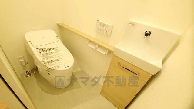 温水洗浄機付トイレです。節水機能もあるので、安心して使えますね。もちろん、1階2階の2ヶ所にトイレがあるので、忙しい朝にもゆとりができますね。