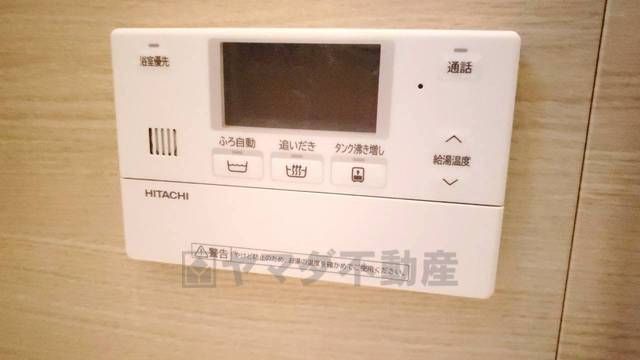 キッチン横からお湯張り、追い炊き、足し湯がボタン一つで楽々操作できる給湯機リモコンです。忙しい夕飯準備の時間帯に重宝しますね。