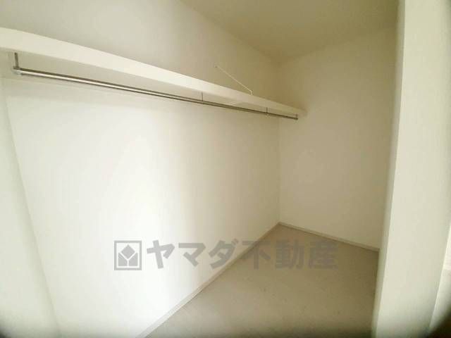 季節物の衣類もスッキリ収納できるウォークインクローゼット。クローゼット内で洋服のコーディネートから着替えまで中で出来るので、部屋が散らかりにくいです。