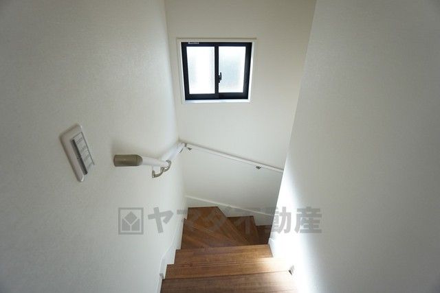 同仕様写真。小さなお子様やご高齢の方でも安心できる、手すり付き階段。段差も低めで設定されており、安全性にも優れています。